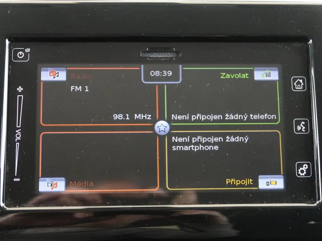 - Pevný displej Multimediální centrum vozu s barevným displejem pro poslech hudby, rádia, ovládání funkcí a zobrazení informací o jízdě.